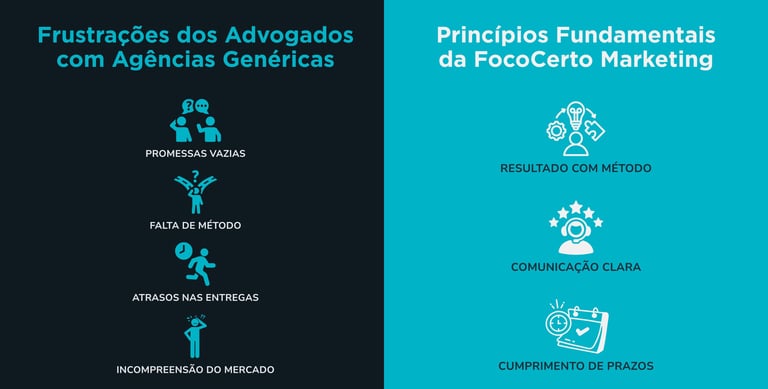 Na FocoCerto, nossa missão é posicionar advogados com clareza e método, transformando presença digital em oportunidades reais. Unimos experiência jurídica e estratégia de marketing para construir autoridade de forma ética, previsível e sustentável.